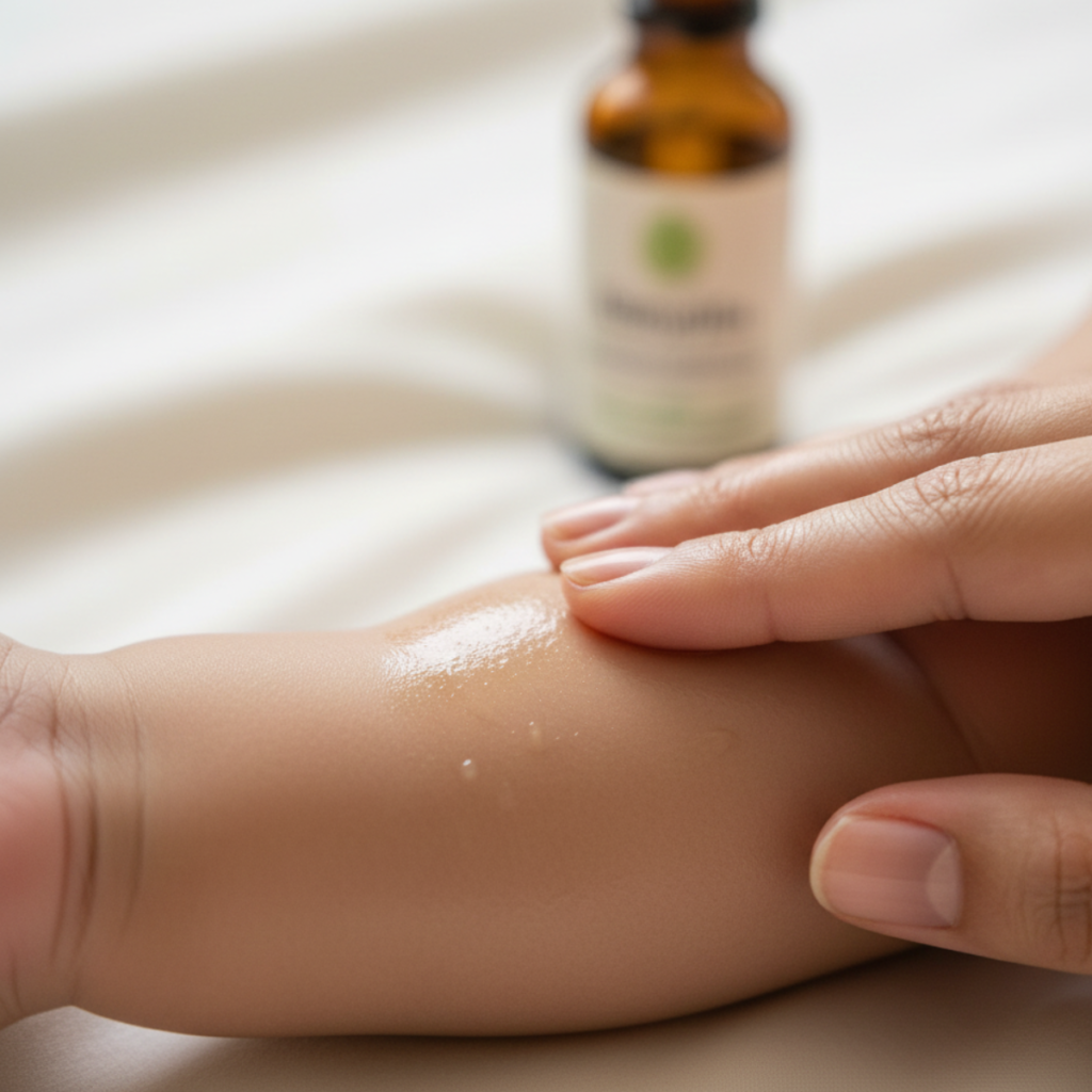 Setiap bahan di dalam minyak ini telah dinilai selamat untuk kegunaan topikal, walaupun pada kulit bayi yang sensitif.